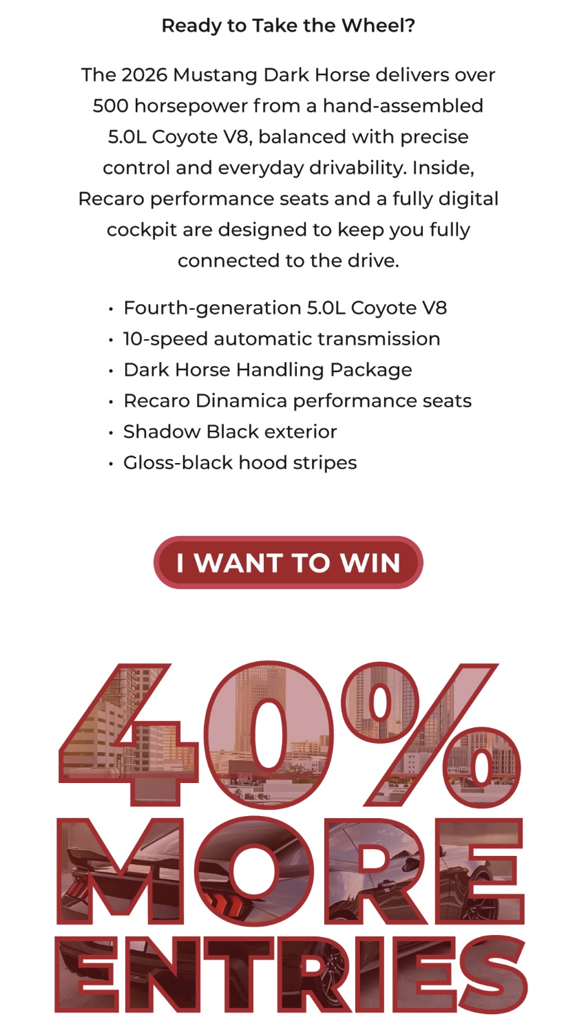 Through the end of March, the PVGP is giving away a 650 sq. ft. professional garage floor coating from our partners at Garage Floors in a Day, valued at $5,000. Donate for your chance to win the 2026 Mustang Dark Horse and receive 40% bonus entries. You’ll also be entered to win a professionally refinished garage floor, completed by the experts at Garage Floors in a Day. This offer is available for a limited time, and installation is restricted to residents of Western Pennsylvania.